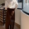 MELANI 啡色牛仔鉛筆中長裙