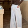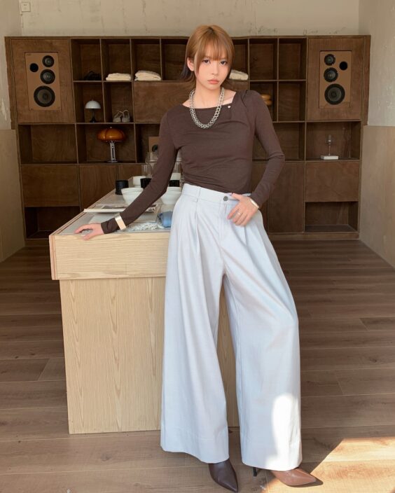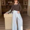 MELANI 杏色褶飾闊腿褲